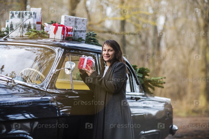Стильная женщина готовит рождественские подарки и елку к празднованию