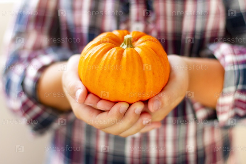 Маленькая девочка держит в руках мини-тыкву