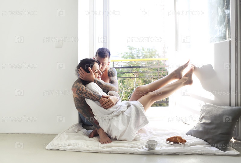 Молодая татуированная стильная влюбленная пара
