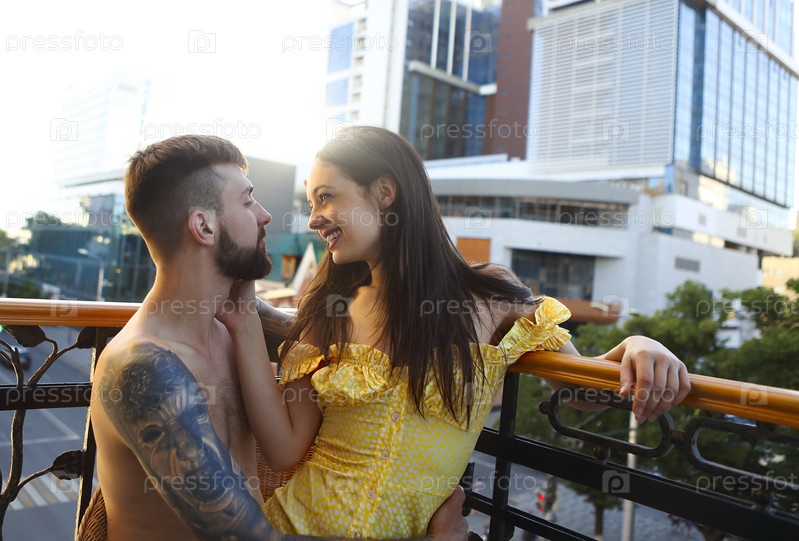 Молодая татуированная стильная влюбленная пара