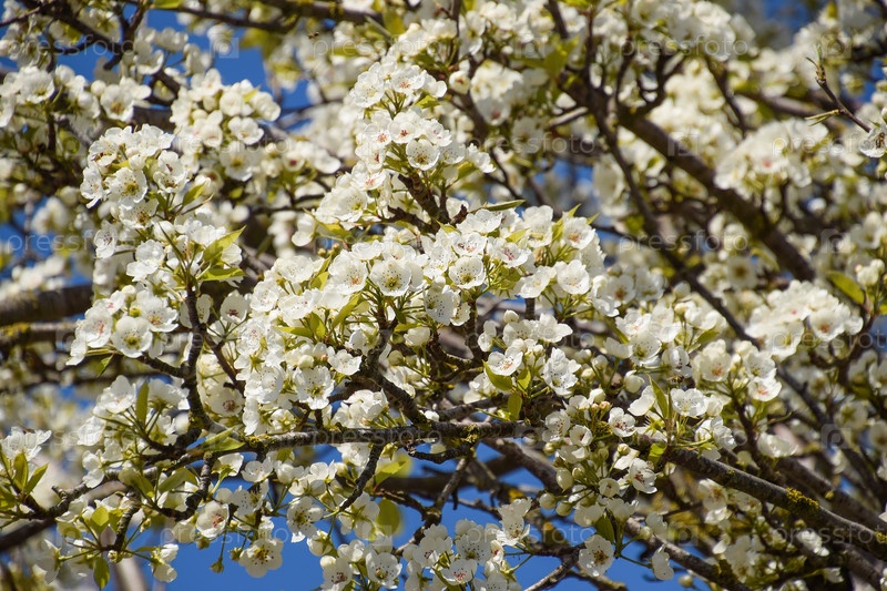 Цветущая дикая груша в саду