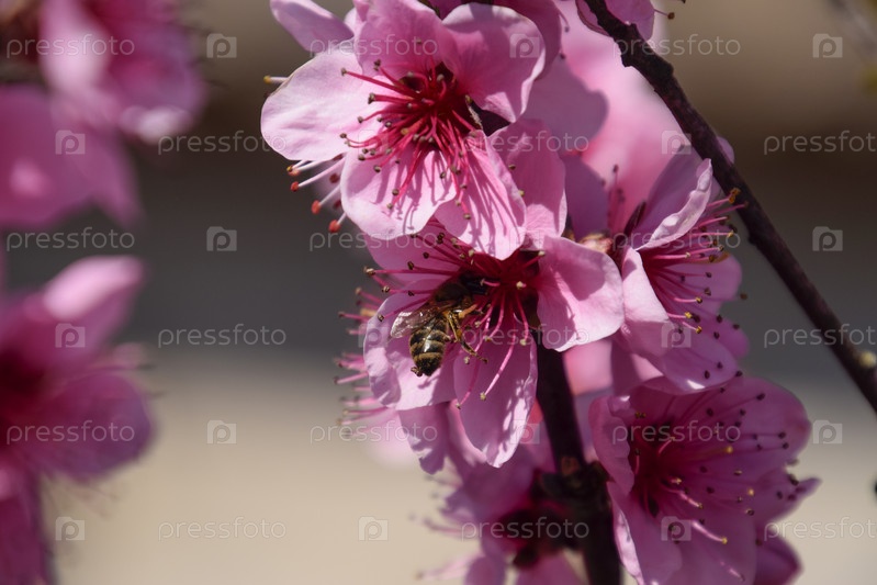 Опыление цветков персика пчелами