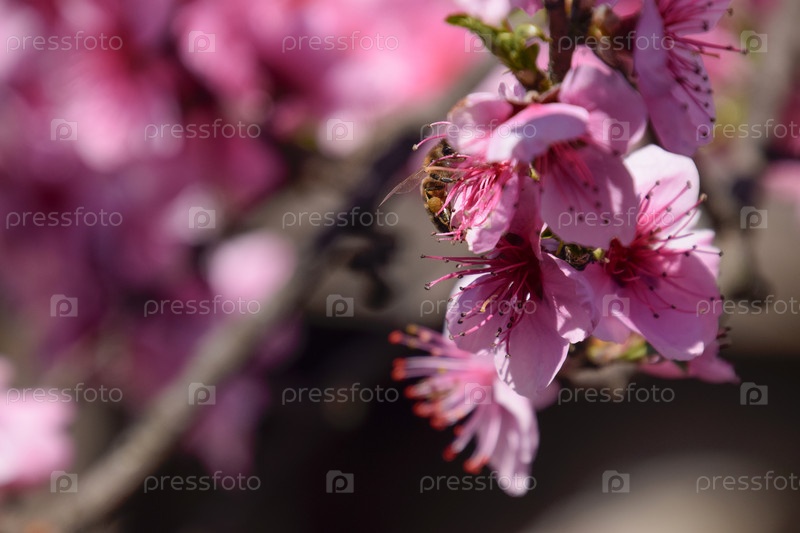 Опыление цветков персика пчелами