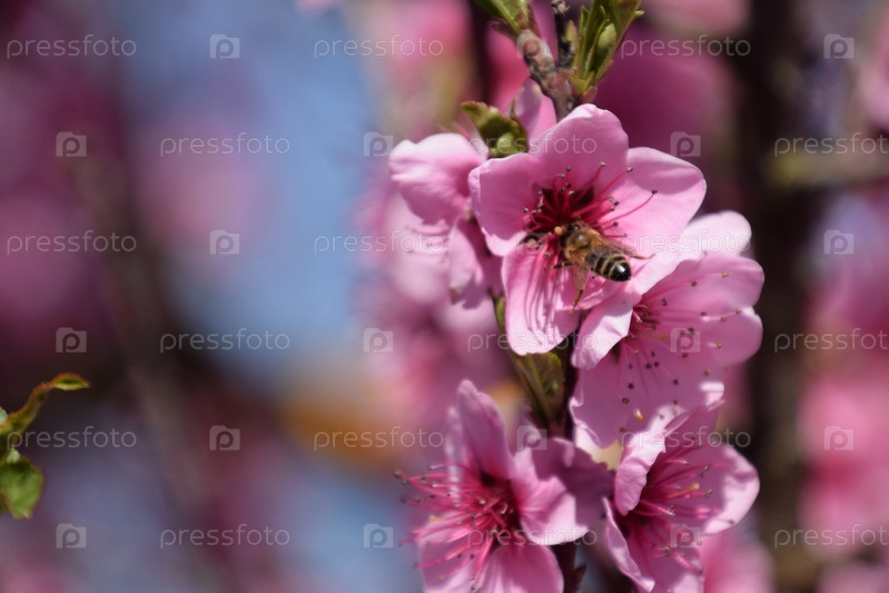 Опыление цветков персика пчелами