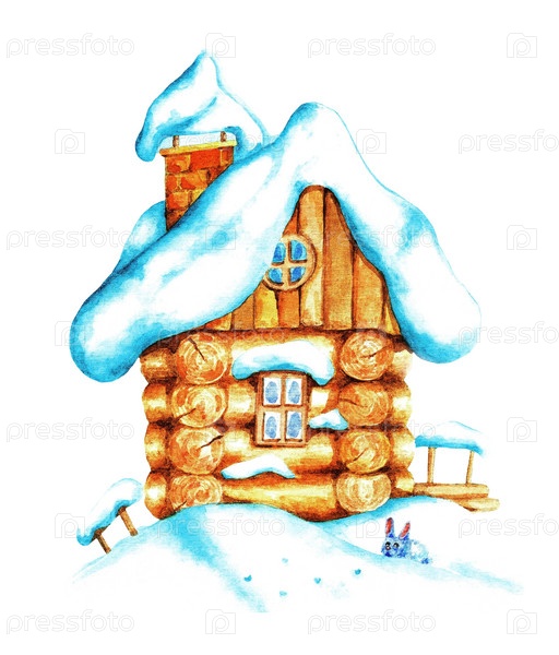 Деревянная хижина, акварель