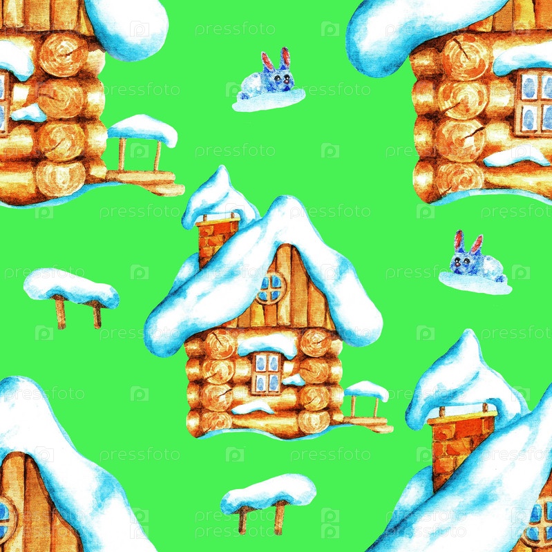Деревянная хижина. Бесшовный узор. Акварель (3)