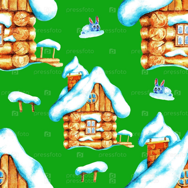 Деревянная хижина. Бесшовный узор. Акварель (9)