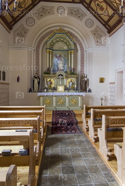 Интерьер небольшой часовни в горах над горнолыжным курортом Целль-ам-Циллер. Тироль, Австрия