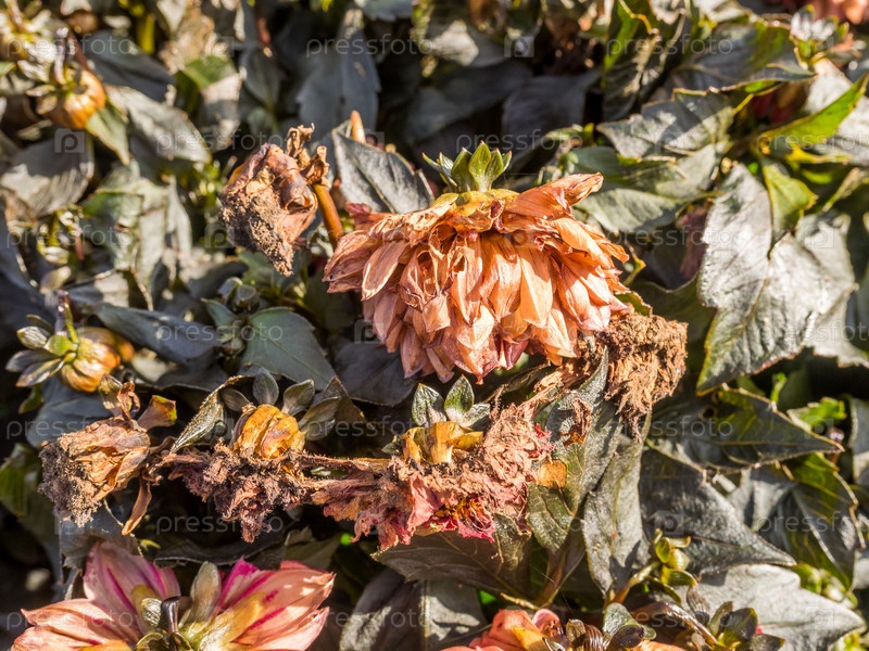 Осенний иней в саду, астры погибли от мороза