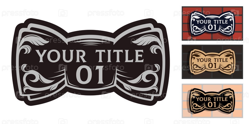 Табличка с номером дома в виде галстука-бабочки с декоративными элементами. Вектор
