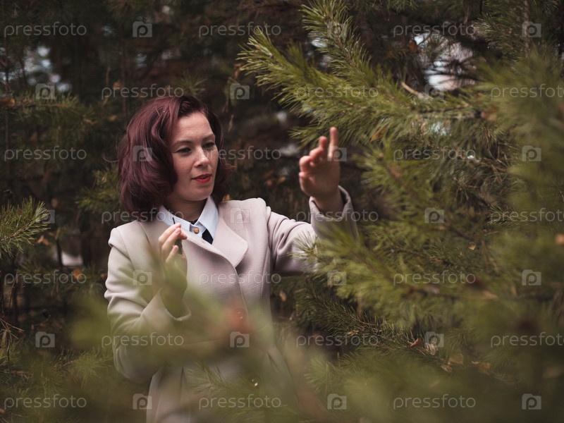 модель на фоне сосен