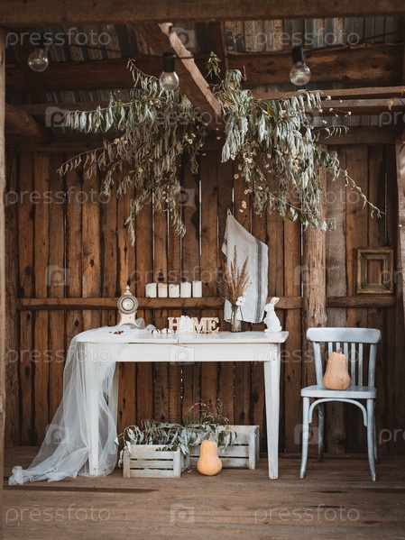 Уютная деревенская терраса старого загородного дома в деревне