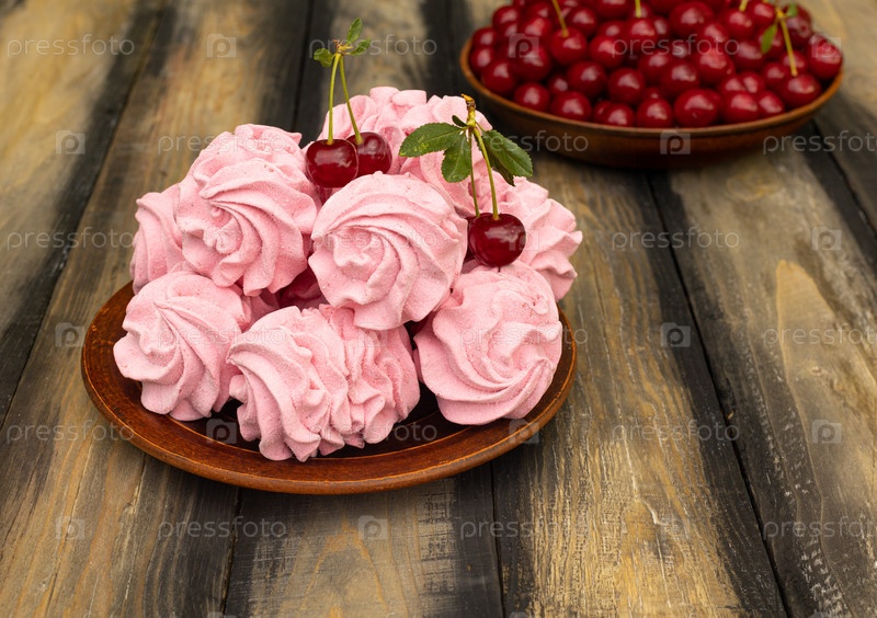 Вишневый домашний зефир из натуральных продуктов с минимумом сахара, в деревенском стиле. французское лакомство для гурманов