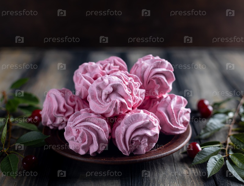 Вишневый розовый зефир летний десерт в деревенском стиле