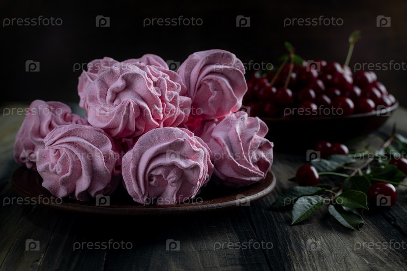 Вишневый розовый зефир летний десерт в деревенском стиле