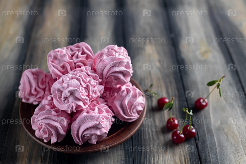 Вишневый розовый зефир летний десерт в деревенском стиле