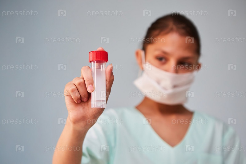 Колба с анализом биологического материала в руках врача