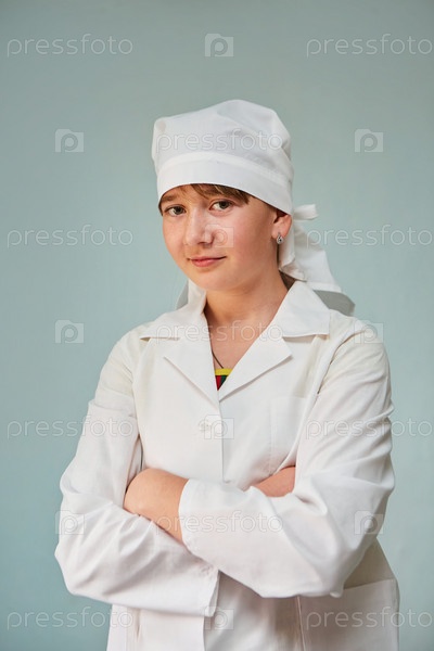 Девушка — молодая медсестра или помощница в медицинской одежде