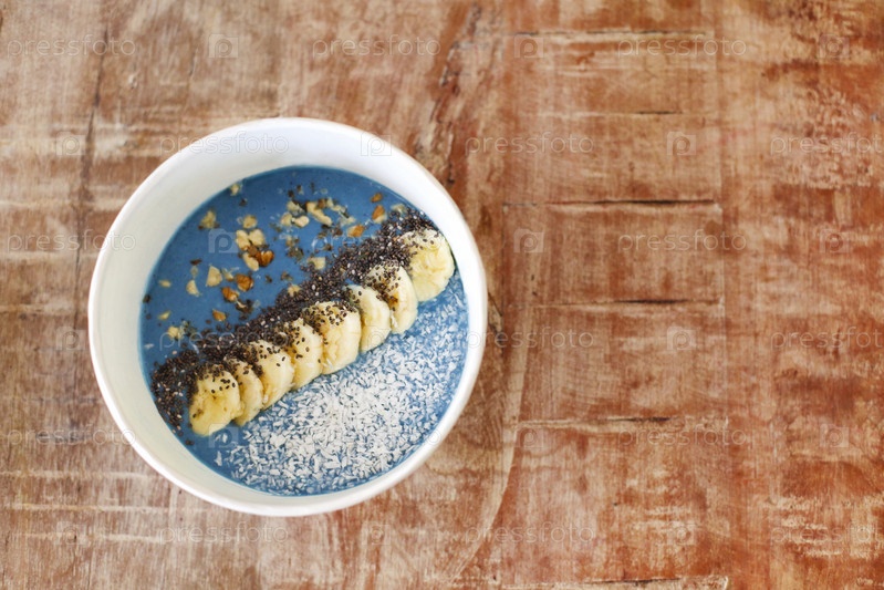 Голубая чаша смузи с бананом и семечками