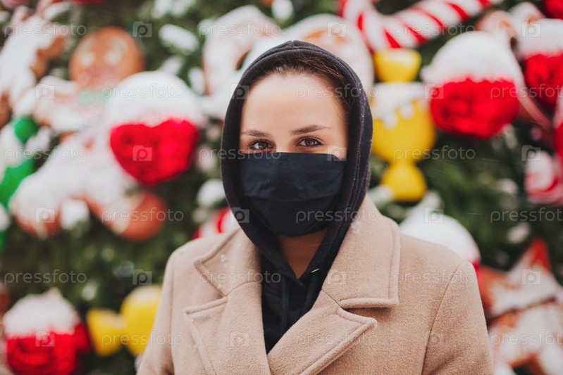 Молодая женщина в черной маске против болезни для защиты от коронавируса на открытом воздухе