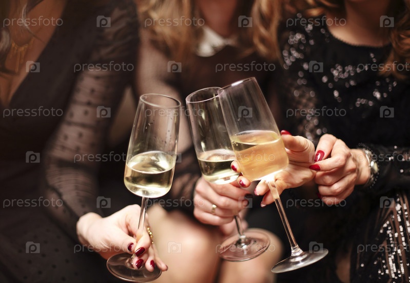 женщины чокаются бокалами шампанского