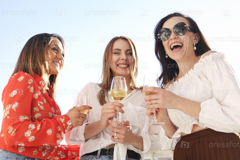 Взрослые женщины с бокалами в солнечном свете