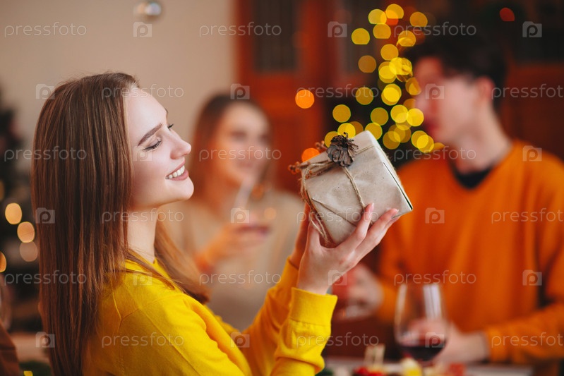 Счастливые люди обмениваются подарками на Рождество
