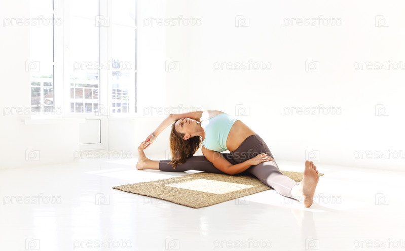 Гибкая женщина занимается йогой дома