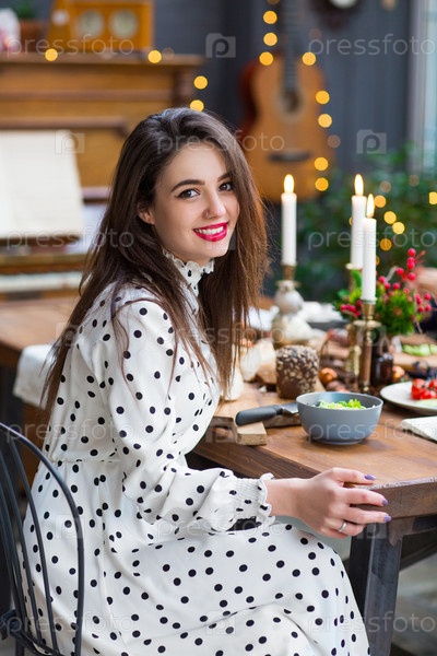Красивая улыбающаяся девушка празднует Рождество