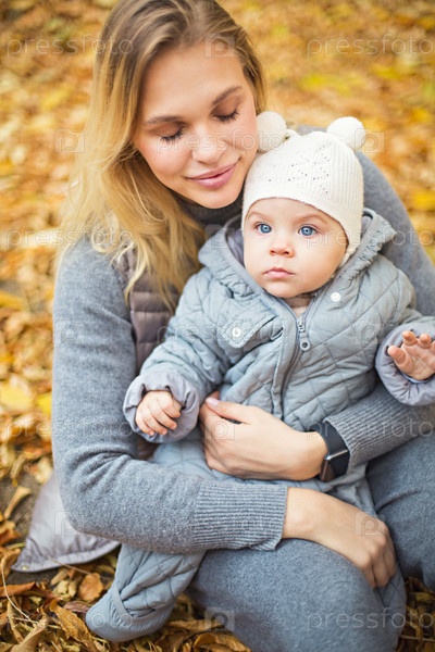 Мать и ее маленькая дочь играют в объятия на осенней прогулке на природе на свежем воздухе