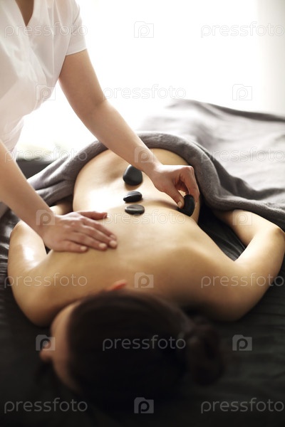 Женщина во время массажа горячими камнями в спа-салоне