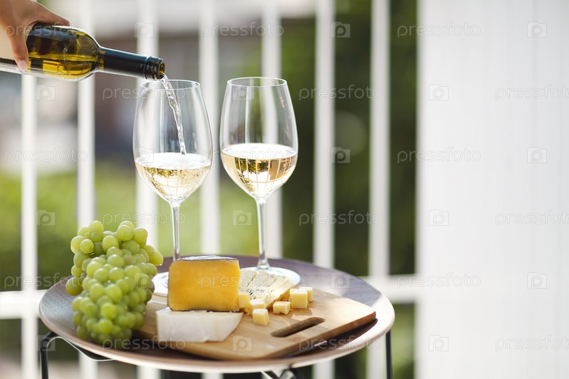 Стол с вином и едой на балконе