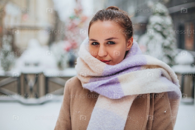 Лицо молодой женщины покрыто светлым вязаным шарфом
