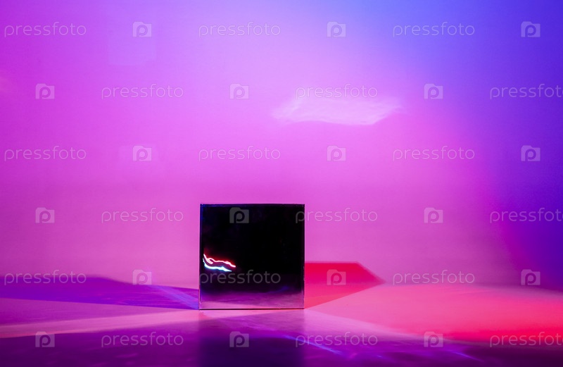 Студийное изображение в футуристическом стиле из металлического темного блестящего куба