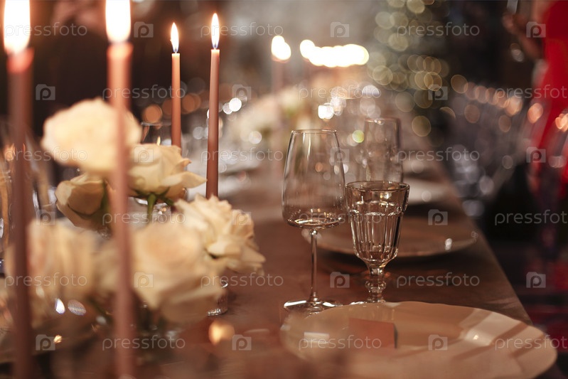 Украшения и посуда на банкетном столе