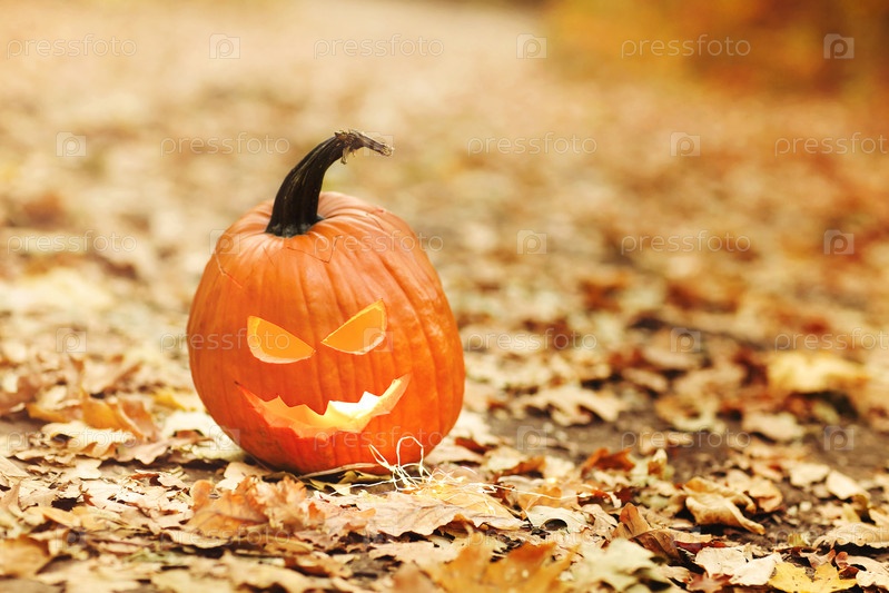 Фонарь Джека на осенних листьях