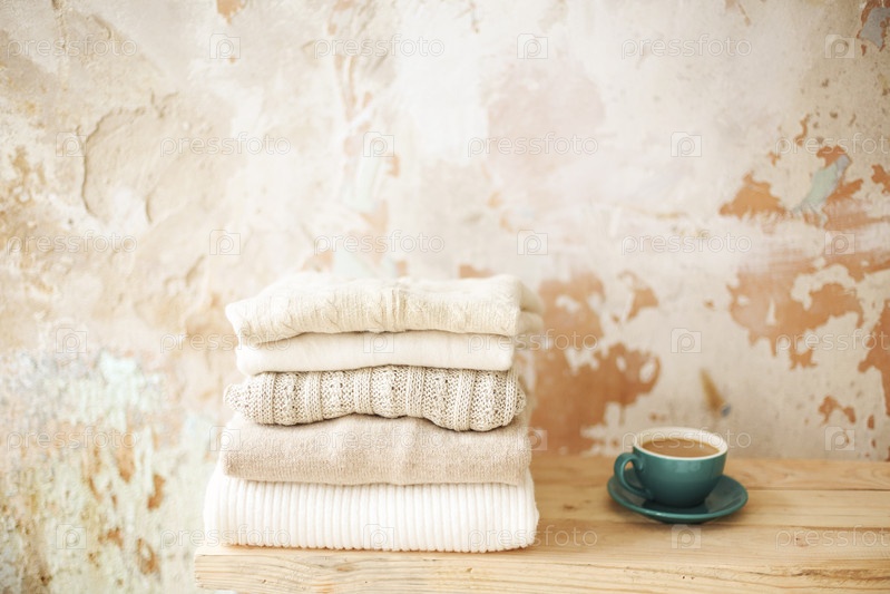 Чашка кофе возле трикотажа