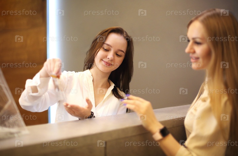 Женщина пишет встречу с клиентом в салоне