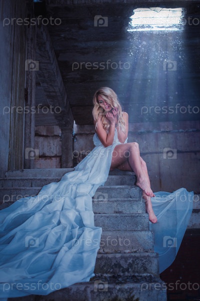 белове платье в грязном здании