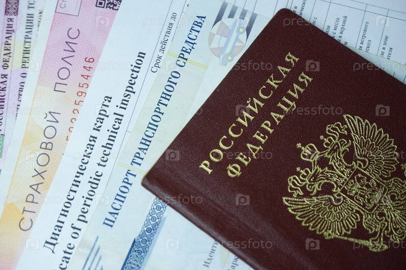 Паспорт РФ на паспорте транспортного средства, диагностической карте и страховом полисе ОСАГО