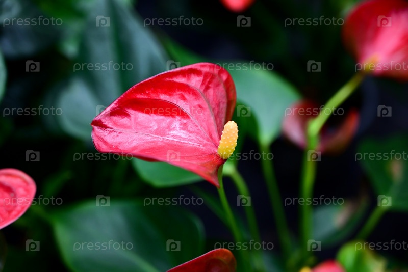 Антуриум, красный, цветок, темный фон, крупный план, весна, садоводство, удобрение, садовый инвентарь, хобби, красота, цветок для офиса, цветок для дома