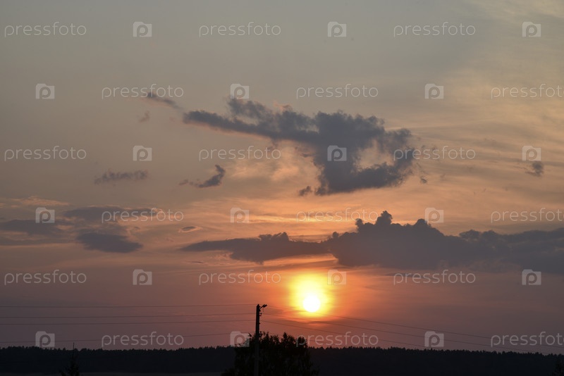 Красивый закат летнего неба облака и летающий самолет. Закатное вечернее небо вечером