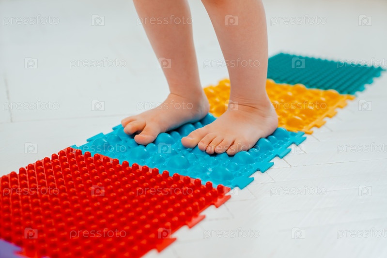 Малыш на коврике для массажа ног. Упражнения для ног на ортопедическом массажном ковре. профилактика плоскостопия и вальгусной деформации стопы