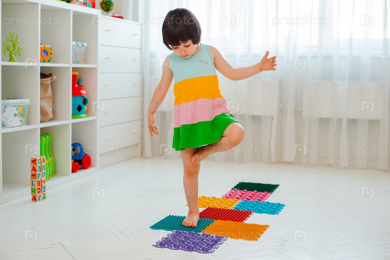 Малыш на коврике для массажа ног. Упражнения для ног на ортопедическом массажном ковре. профилактика плоскостопия и вальгусной деформации стопы