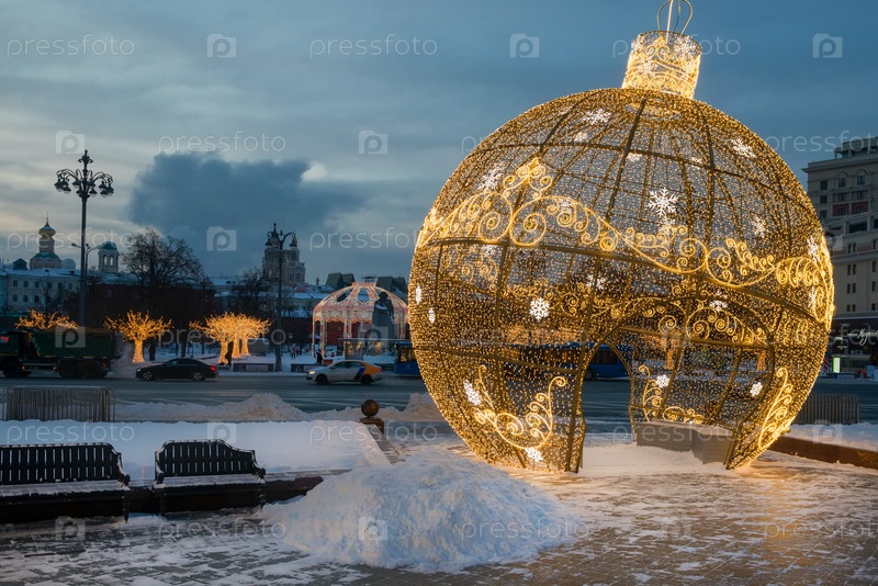 Праздничная Москва. Новый год в России. Новогоднее украшение улиц Москвы. Новогодние украшения перед Большим театром. Зимний вечер в Москве. Рождество в России