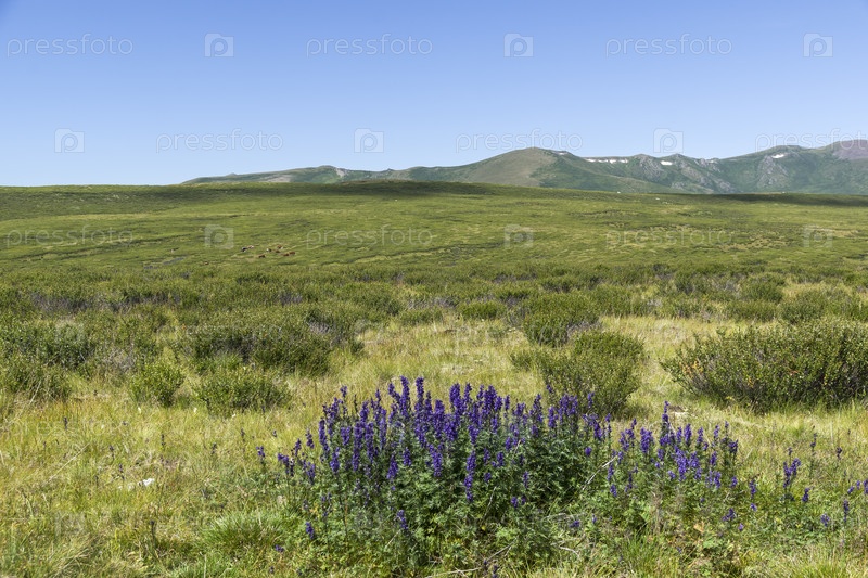 Цветущий дельфиниум на Оройском перевале. Август. Горный Алтай
