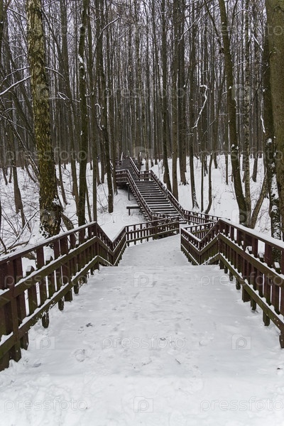 Деревянная лестница через овраг. Москва, Битцевский лес, декабрь