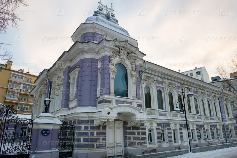 Москва, Россия - 17 января 2021 г.: Здание старинного особняка Коробкова на Пятницкой улице в Москве морозным зимним утром