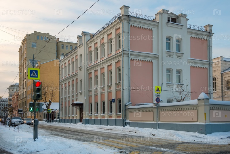 Москва, Россия - 17 января 2021 г.: Вид на улицу Малая Ордынка морозным зимним утром после сильного снегопада