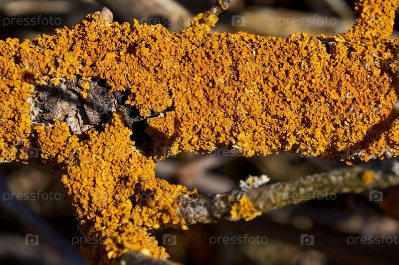 Ксантория стеновая (лат. Xanthoria parietina) лишайник семейства телохистовых, вид рода Xanthoria на коре дерева